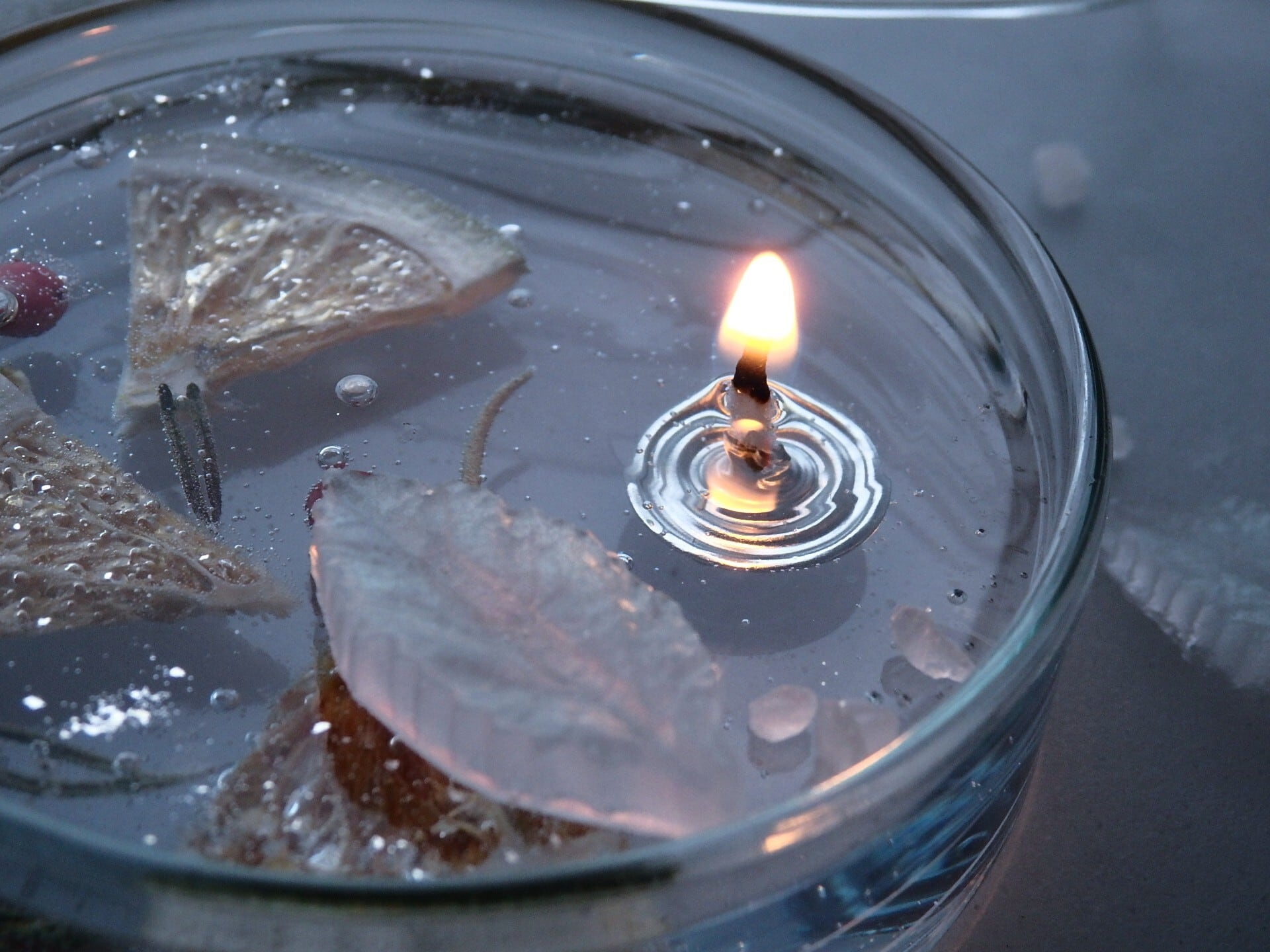 柑橘の香りの蝋と岩塩を周りに添えれば